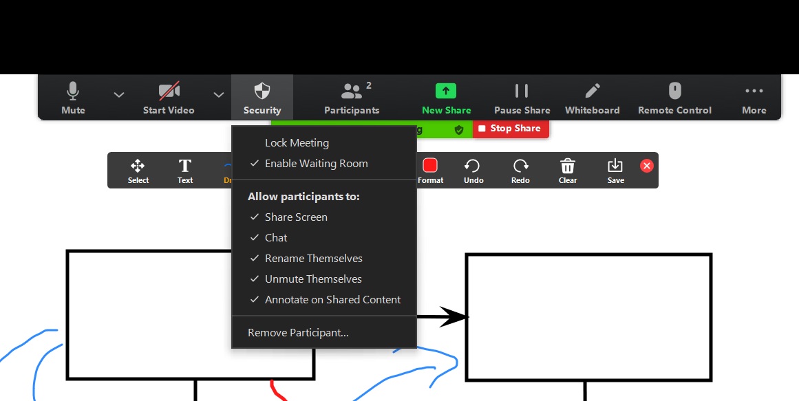 Zoom annotation controls on a laptop